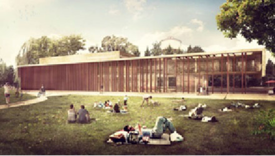 Representa una extensión del parque en las actividades con menor control (cafetería, comercios, conferencias, exposiciones) y se complementa con plataformas culturales para la proyección de cine y la realización de ferias.