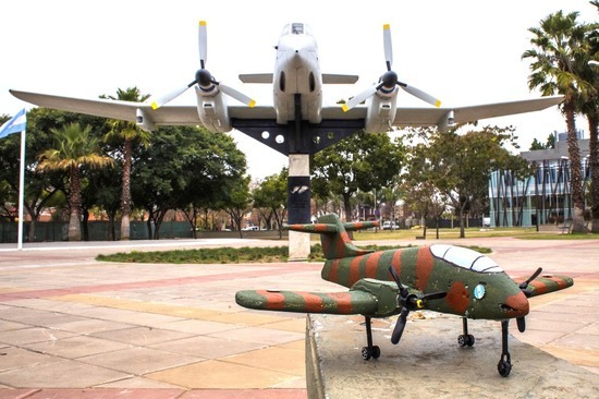 El Pucará, que funciona con energía eléctrica, está hecho con telgopor y madera, con hélices y motores de autos a control remoto.
