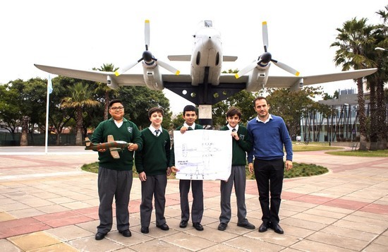 El intendente Sebastián Abella recibió esta semana a cuatro alumnos de 1er año del Colegio del Norte que, en el marco de una clase abierta sobre Malvinas, realizaron una réplica a escala del avión Pucará actualmente emplazado en el Parque Urbano.