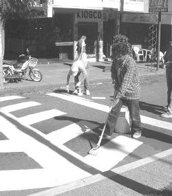 Mediante un contrato firmado tiempo atrás entre el municipio y personal de CO.DE.ME. se encuentran realizando trabajos de pintados de las sendas peatonales, parterres y lomos de burro, en la avenida Rocca, tramo que ve desde la escalinata de la Plaza Eduardo Costa, hasta la Estación de Ferrocarril.