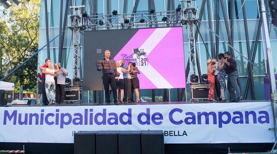 AYER, EN LA PRE-FIESTA SE PRESENTÓ EL TALLER MUNICIPAL DE TANGO EN EL ESCENARIO DEL PARQUE URBANO.