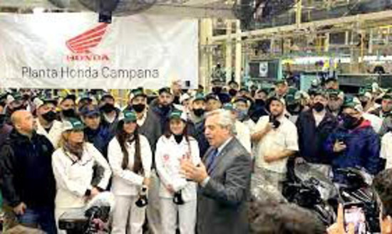 El presidente Alberto Fernández recorrió ayer la planta Campana de Honda Argentina, que alcanzará este mes la producción de 1.200.000 motos de industria nacional desde que inició la fabricación en 2006.
