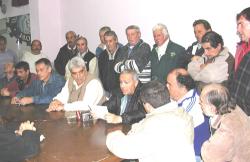 Durante la reunión de prensa convocada en la sede de la U.O.M., los integrantes de la Cooperativa, acompañados por Angel Recúpero.